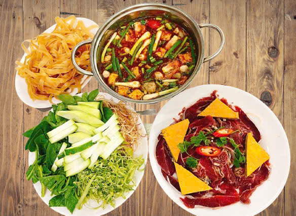 • LẨU BẮP BÒ NHÚNG RIÊU CUA